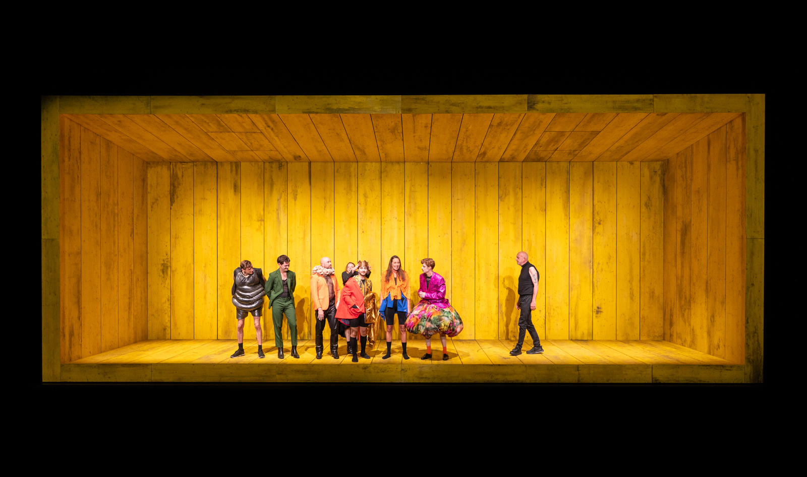 Diese Thematik greift Ewald Palmetshofer in seinem Stück Sankt Falstaff auf und rückt sie mitten in unsere Gegenwart. Sein Falstaff ist kein Ritter mehr, sondern ein Außenseiter in einer kapitalistisch beschleunigten, sozial zersplitterten Gesellschaft. Auch er sehnt sich nach Nähe, nach Verbindung, nach einem anderen Umgang miteinander. Doch gerade das macht ihn zum Fremdkörper. In einer Welt, in der Profit über Prinzipien steht, Individualismus über Solidarität und digitale Selbstdarstellung über echter Begegnung, erscheint Falstaffs Menschlichkeit fast schon radikal.