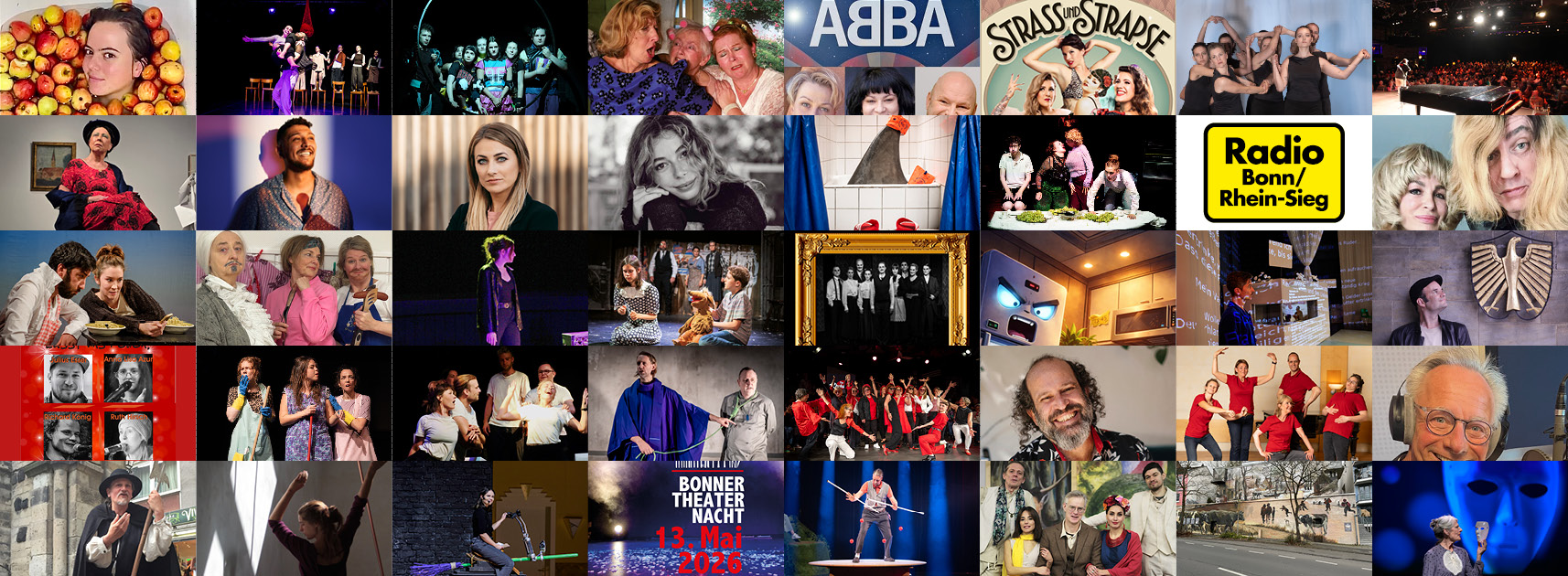 Am 13. Mai ist es wieder so weit: Die Bonner Theaternacht geht in ihre 20. Runde – und lädt Sie ein, die ganze Vielfalt des Theaters zu entdecken! Mit nur einem Ticket erleben Sie 125 Veranstaltungen auf 37 Bühnen in ganz Bonn – von Oper über Schauspiel bis Tanz.